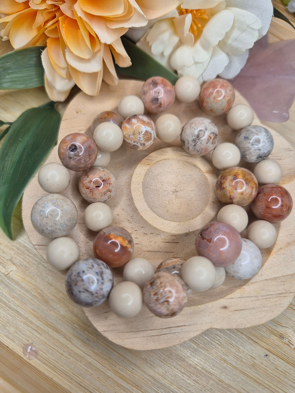 Coral Jade and Fossil Jasper Bracelet